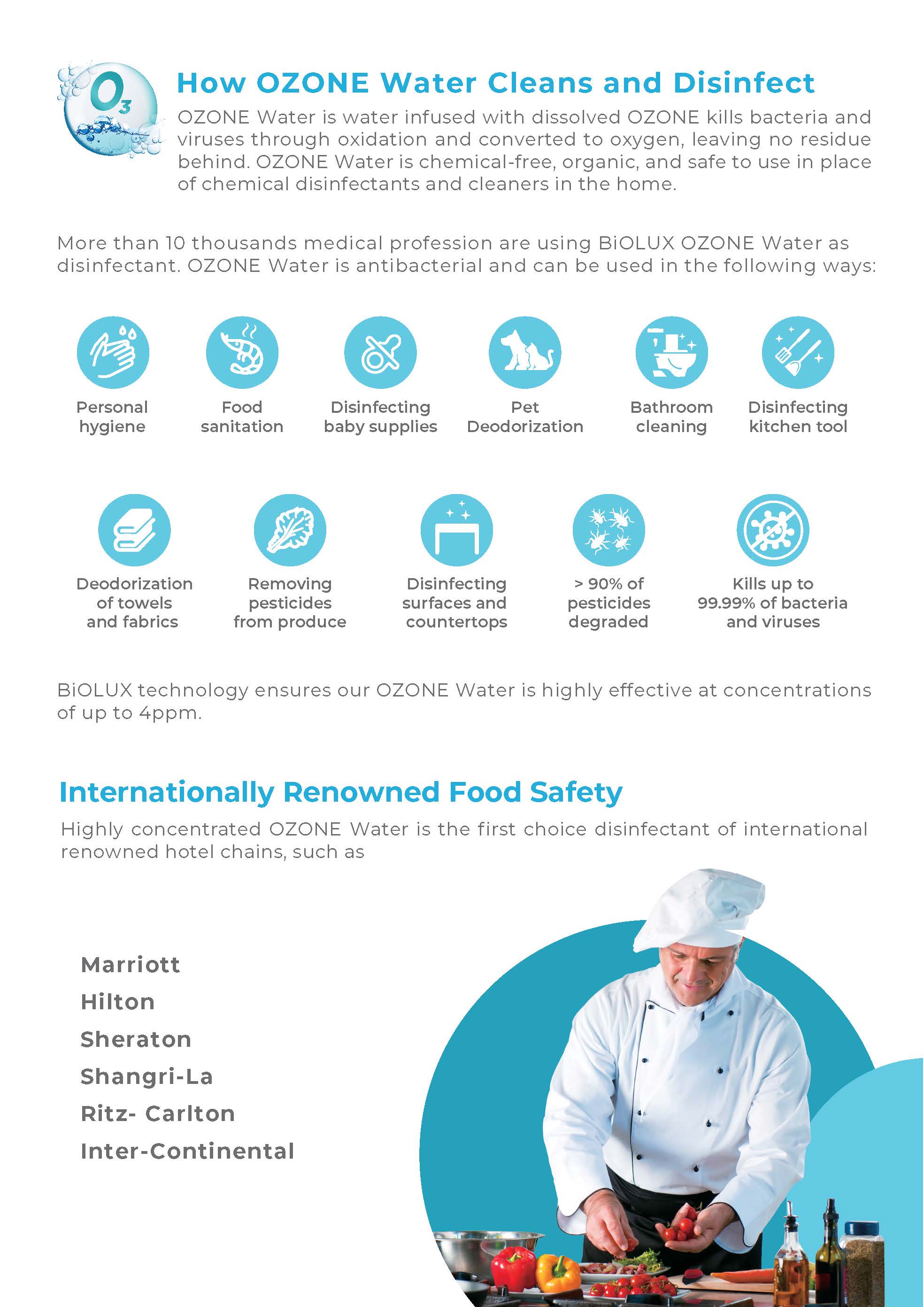 Japan scientists from Fujita Health University had already proven that OZONE could kill coronavirus. BiOLUX OZONE water is allergy free and non-drying.